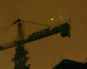 2013年6月6日凌晨,武漢市區電閃雷鳴。《武漢晨報》攝影記者石一在機場高速公路與馬池路交會處附近的一個小區拍攝雷電時,無意中拍到幾個綠黃色神秘光團(圖2、3)。[2]