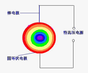 “棒電極”在球心O對“圓環狀電極”“超短時間內的高能”(超高壓)充電、放電,可以產生“七彩圓盤狀閃電”,簡稱為“七彩閃電”(圖8、9)。[7]