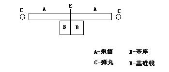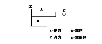 設(shè):A—炮筒;B—基座;C—彈丸;E—基準(zhǔn)線。