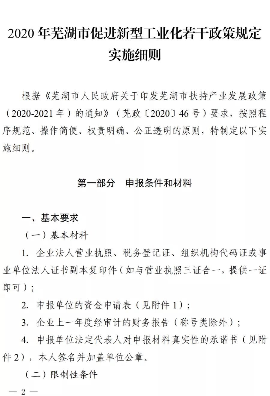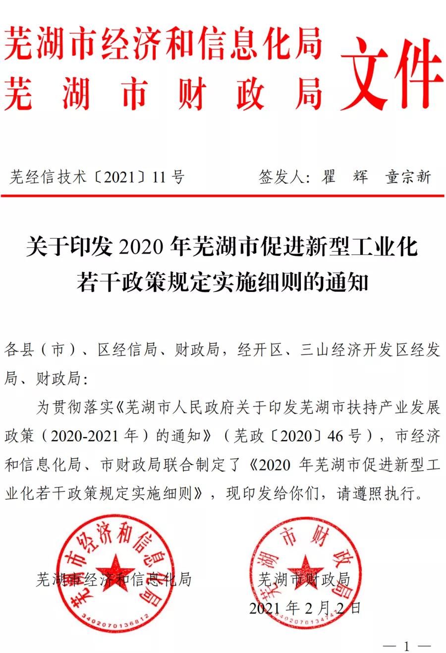 - 蕪湖市2020年促進(jìn)新型工業(yè)化若干政策規(guī)定實(shí)施細(xì)則印發(fā)