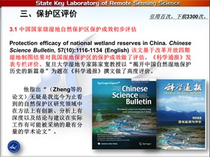 我們工作分兩部分,先是在2012年科學通報發(fā)過文章就是中國濕地監(jiān)測與評價,同時把我們以前做的工作和新的工作匯到一起,一起向各位前輩報告一下。