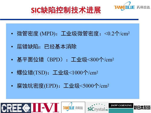 目前工業級碳化硅襯底微管密度小于0.2個/cm2,層錯缺陷基本消除,基平面位錯工業級襯底小于800個/cm2。經預測,2019年碳化硅襯底市場約為3.5億美金,主要包括電力電子和微波領域,加上LED等其他領域應用,大概為8億美金。