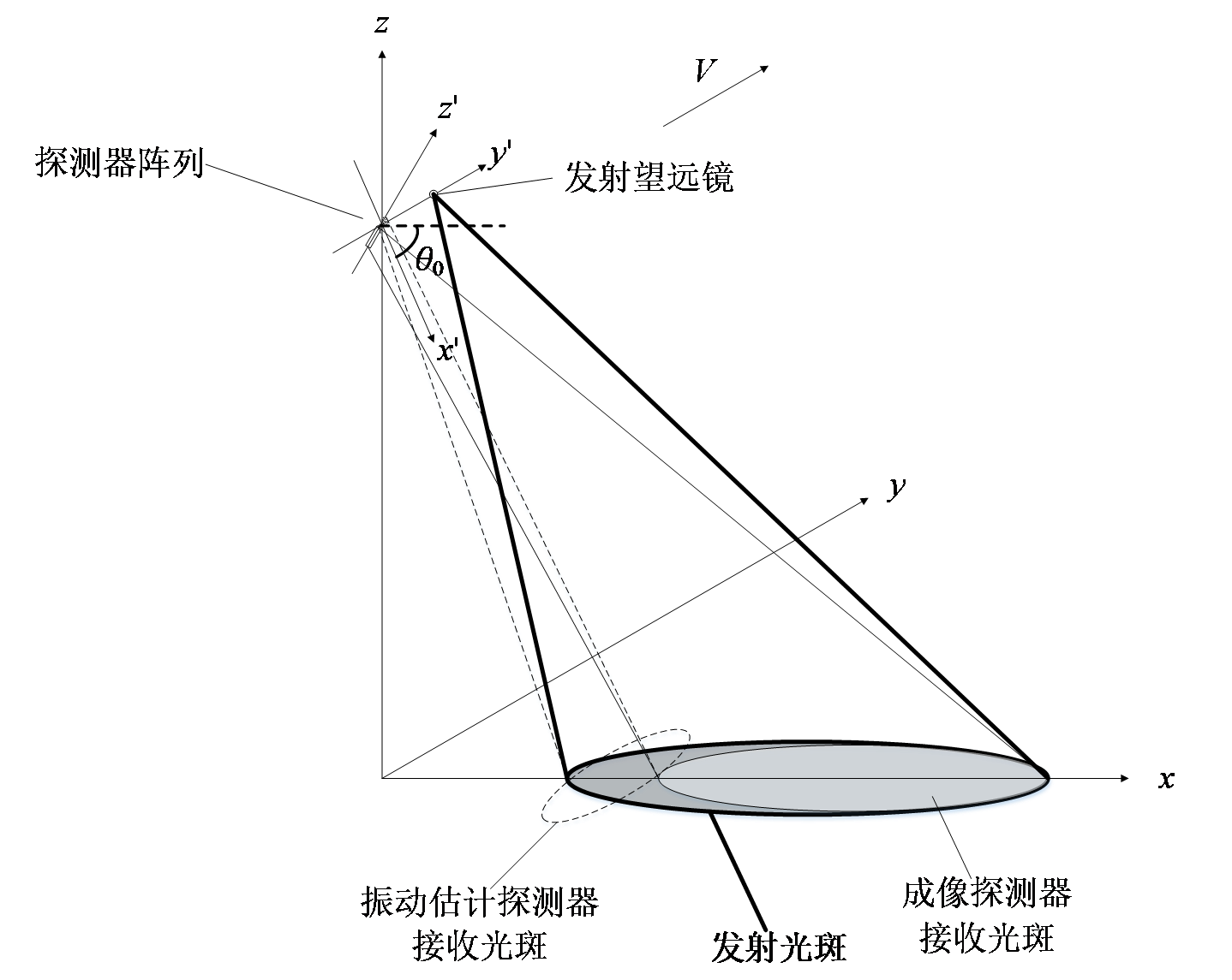 與傳統光學系統圖像概念不同,SAL獲取的圖像在斜距-多普勒頻率兩維。需要寬的接收視場,但不要求具有高的空間角分辨率,具備采用一個或少量光電探測器實現激光雷達寬視場接收的使用條件,在原理上可用“非成像光學系統”。據此特點,SAL應可通過偏置探測器在“離焦”狀態形成重疊視場,以進行振動相位誤差估計,也應可通過“散焦”擴大瞬時觀測范圍。