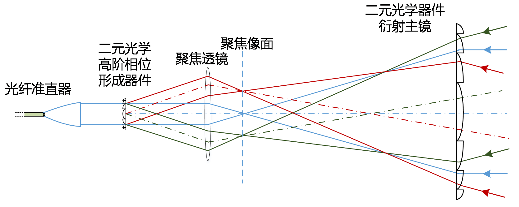 一個在壓縮光路中饋源和主鏡兩處使用二元光學器件的機載SAL衍射光學系統如圖4所示。