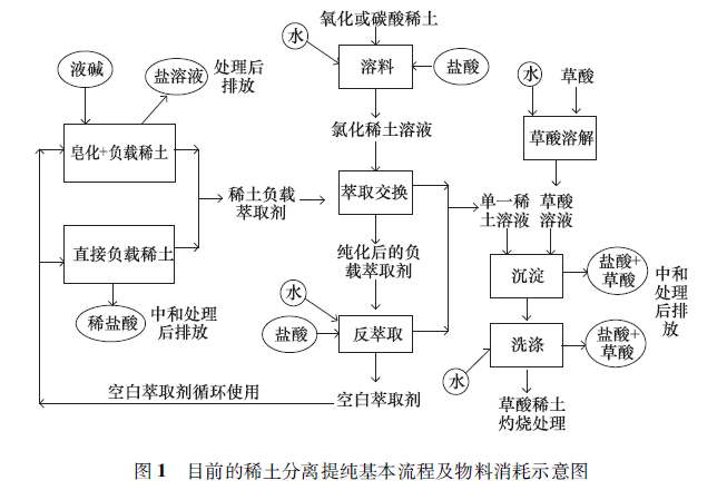 稀土分離提純工藝可大體上分為溶礦、萃取分離、沉淀幾個步驟。